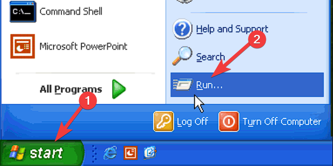 - Click the Start button and choose Run.