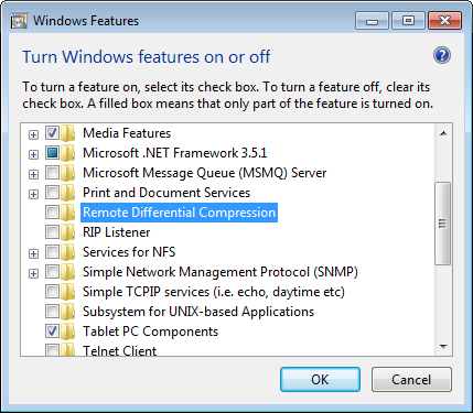 7. Disable the Remote Differential Compression option (Windows Vista and 7)
