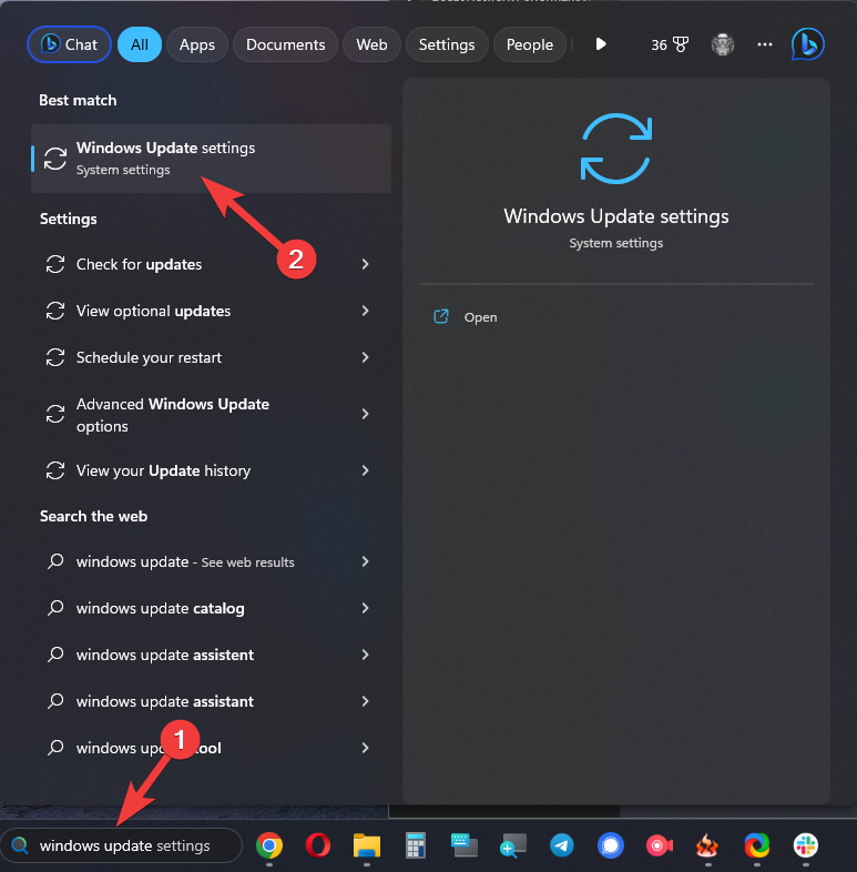 - Click the Start button, and type Windows Update.