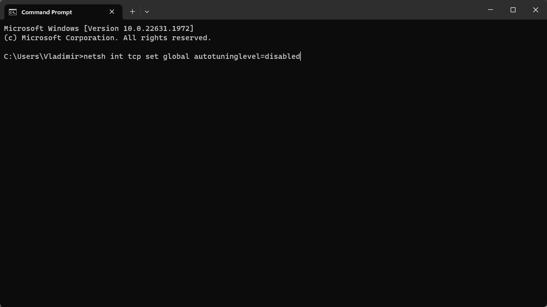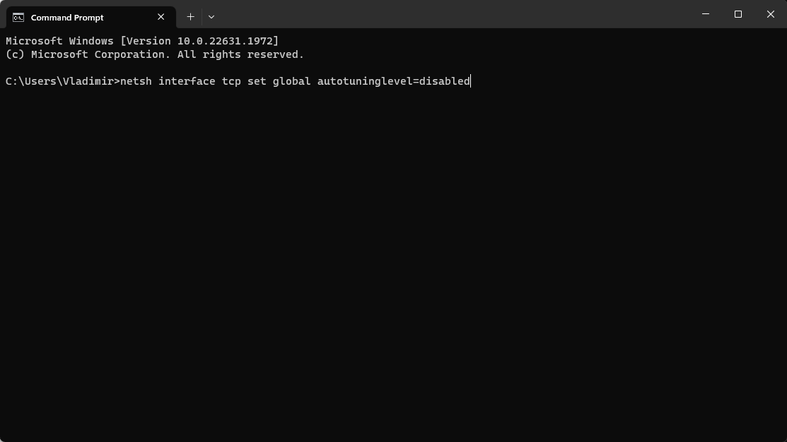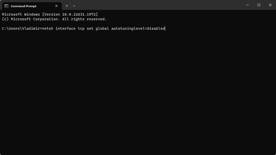 netsh int tcp set global autotuninglevel=disabled