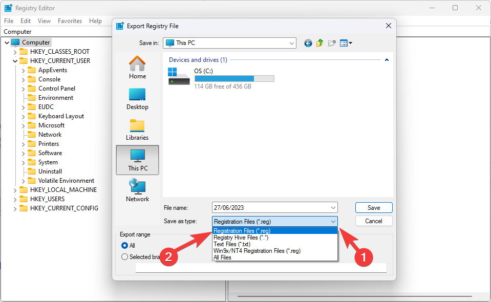 1.3. Export the registry keys you’ve chosen