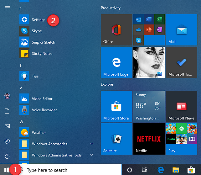- Click Start and open the Settings app.