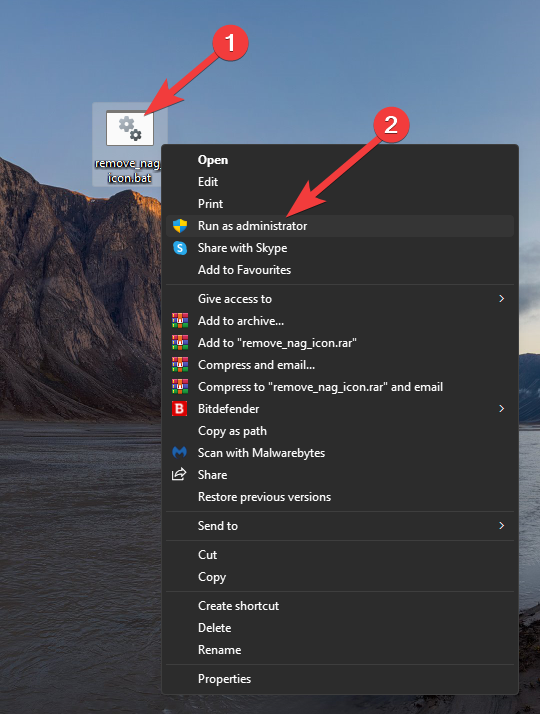 Another efficient method to remove the Windows Nag Icon is to use a.bat script file.