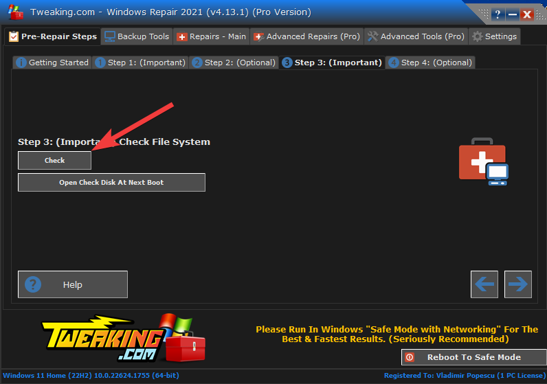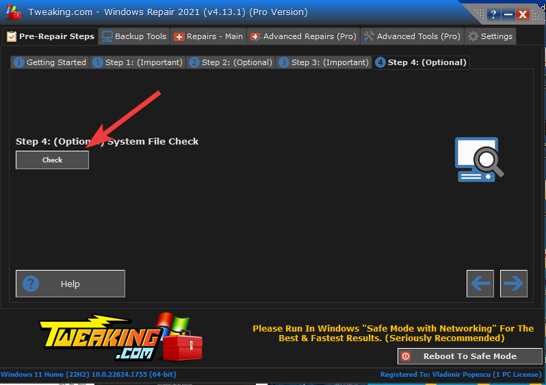 - Always run the Tweaking repairs in Windows Safe Mode – The best approach to ensure that third-party apps remain out of the way and to accelerate the repairs is to run in safe mode.