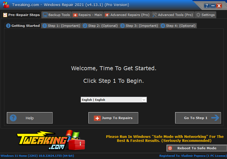 - Download the most recent version of the Tweaking Repair tool.