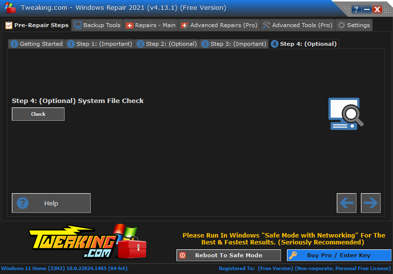 - Repair Windows Safe Mode: Fixes any files or settings in Windows Safe Mode that may have become corrupted or missing.