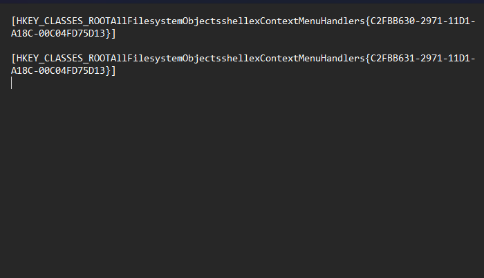 [HKEY_CLASSES_ROOTAllFilesystemObjectsshellexContextMenuHandlers{C2FBB630-2971-11D1-A18C-00C04FD75D13}]