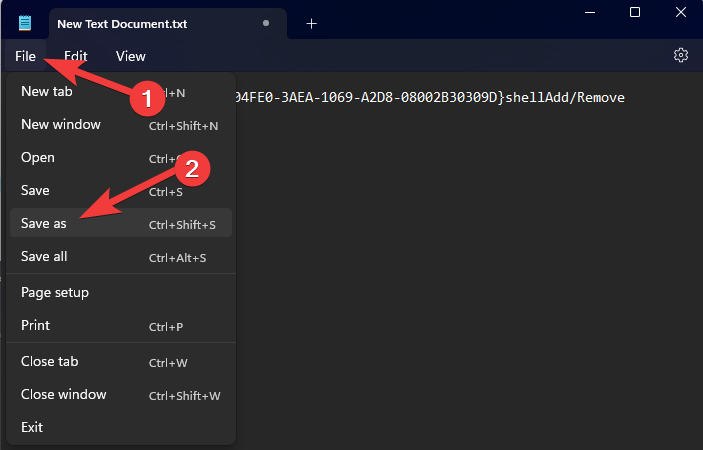 - Save the newly-created file by using the Save as option with a .reg format, and then run it to apply the settings.