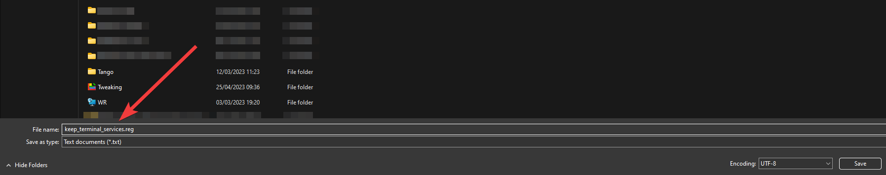 - Save the file with a .reg extension, such as keep_terminal_services.reg.