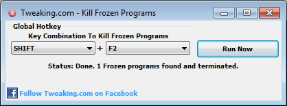 Now with this Kill Frozen Programs app, you can hit the Global Keys on the keyboard you set. The program will loop through all the processes on the system, killing any that are not responding. Now you can get back to the desktop when a game crashes and no longer have to reboot.