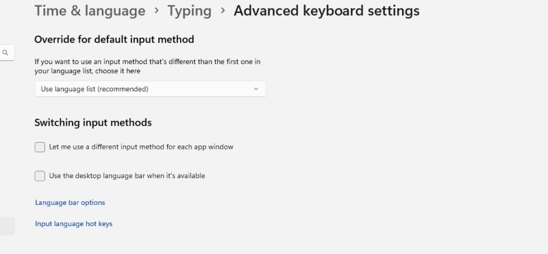 - Navigate to Time & language > Typing.