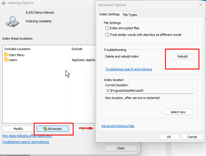 You can rebuild the Windows Search Index if the search bar fails. This process refreshes the search function’s index to locate files and data on your system.