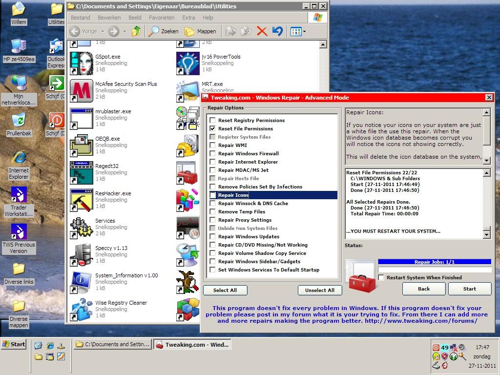 Is my system to blame (outdated ???). One problem was solved by removing one program that helped me to update my NOKIA mobile phone. But even then WR should behave in - IMO - a more regular/stable fashion. Perhaps I should try the separate programs that contain only ONE repair job to see what's going on.