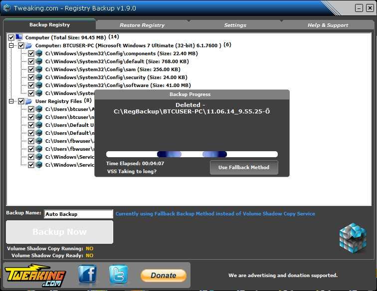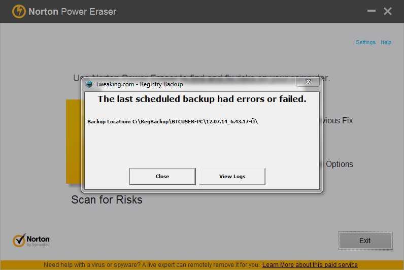 Note : I can confirm that the problem is caused by the NPE program, a pop-up error messages appear when both NPE & Registry Backup programs are working at the same time! Both are pop-up when I run a scan with the NPE program / when your program is doing a restore point in the next system reboot!