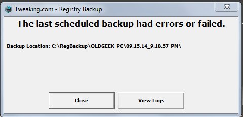 Just updated to ver. 2.9.0 and the registry backup is not working...