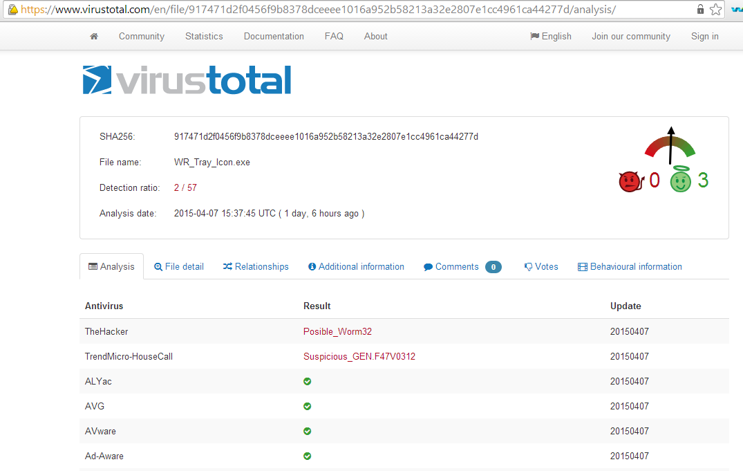 WR_Tray_Icon.exe still flagged by TrendMicro-HouseCall