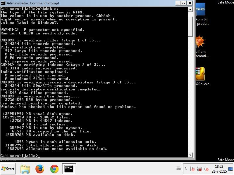 I can't start a sfc/scannow with command promt. This is also not possible in safemode.