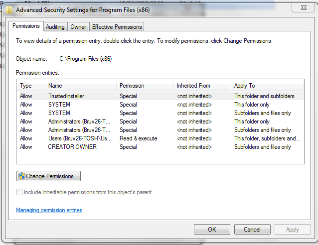 • Check "Program Files (x86)" folder permissions and it's reset to default (set attachment)