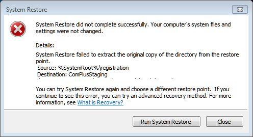 Yes, you're right - the Create a Restore Point option in WRAIO doesn't work, certainly in W7. I created a restore point using WRAIO (which was a suspiciously fast operation), installed a program and then attempted to roll back by restoring using Windows' inbuilt System Restore. All proceeded as expected until Windows restarted when I got the message below:-