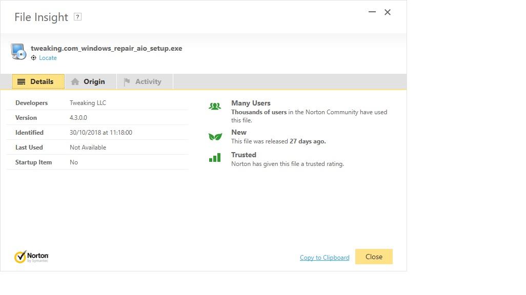 Last year my Norton Security started kicking out the Tweaking.com Windows Repair program that I already had installed.