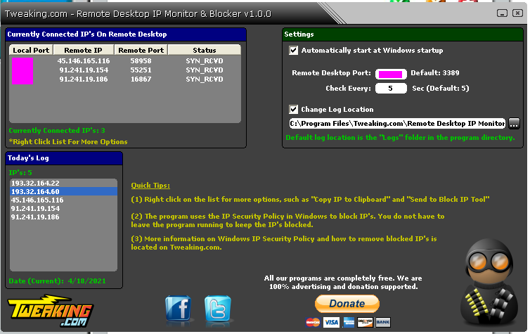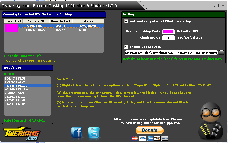 Author Topic: Remote Desktop IP Monitor -- SYN_RCVD and ESTABLISHED  (Read 23911 times)