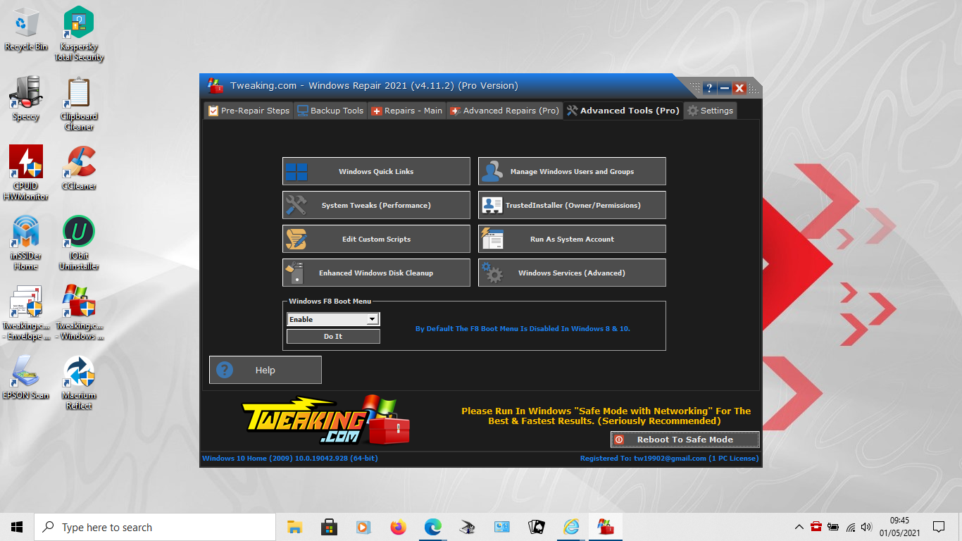 I don't know how long this site has been up; but, some many months back, I heard two techs discussing great software for windows issues.  They were talking about tweaking.com!  I came here and downloaded the free WR and forgot about it as I didn't need it then.  Well, after all this time, I forgot that I had it.  Between the last 2 win 10 updates that are so kindly forced on us, MS managed to practically destroy my desktop.  I worked on it for days trying MS tools, other well known repair softwares, and 1 trip to each of two different computer tech shops.  Both places I was told generally the same thing.... bite the bullet... buy new desktop.  I am not a person to take those words well.  Neither do I have unlimited funds available to throw at buying new.  $1500 is not in my budget.  I kept thinking that there is a way to straighten this out if I can figure it out.  Then, I remembered your Windows Repair Tool!  In about a matter of 30 minutes, this thing was like brand new!  I cannot thank tweaking.com enough.  I am nearly 80 years old and I am still the one who keeps the family's computers going....  not sure how long I can keep doing that...  haha!  My time is running out.  But, if I had listened to what I was told, I would have had to spend money I didn't have. My appreeciation is boundless.  This leads me to my question.  I would like to buy the tech version as I understand it has the most tools. Does that mean that it contains all of what you offer on this site? And, is that a forever license?  I don't need the license for any commercial use... only for my immediate family who never compensates me.  I just enjoy doing what I can.  Thanks again, Misty