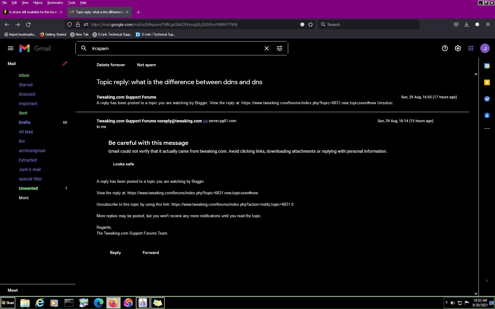 I also think that this information has not been given to gmail, mostly used, which is making it as spam, as the tweaking.com is not found in their server and it shows the name server as via server resultilng in all the spam alerts .