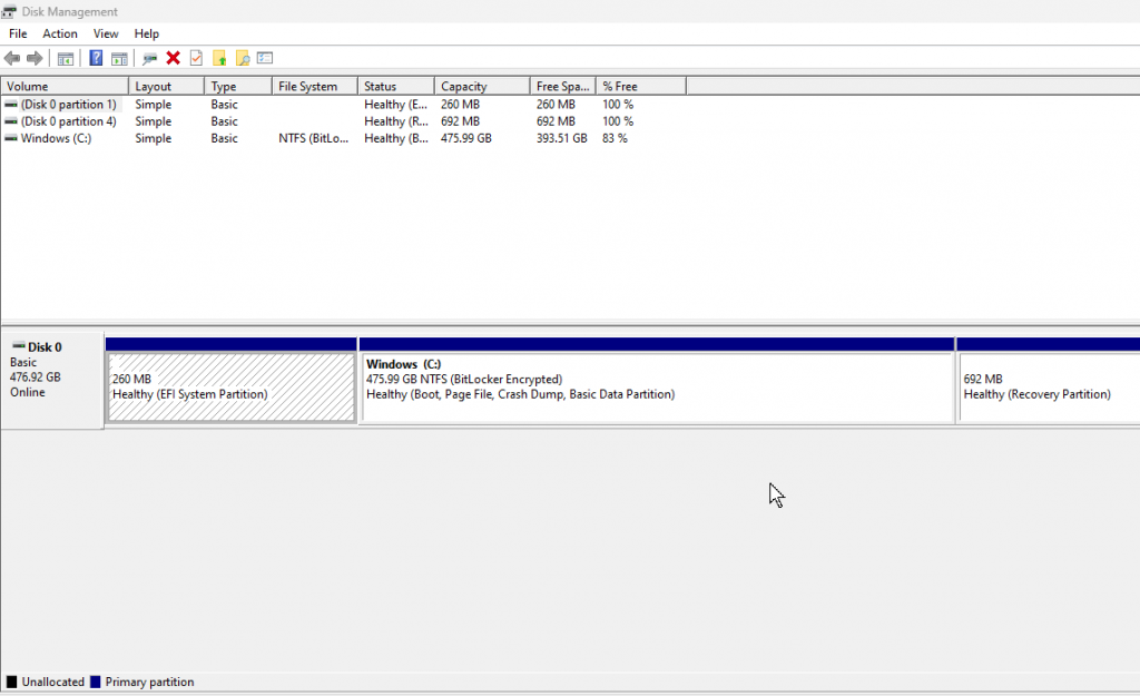 1. Open Disk Management by right-clicking the Start button and selecting Disk Management.
